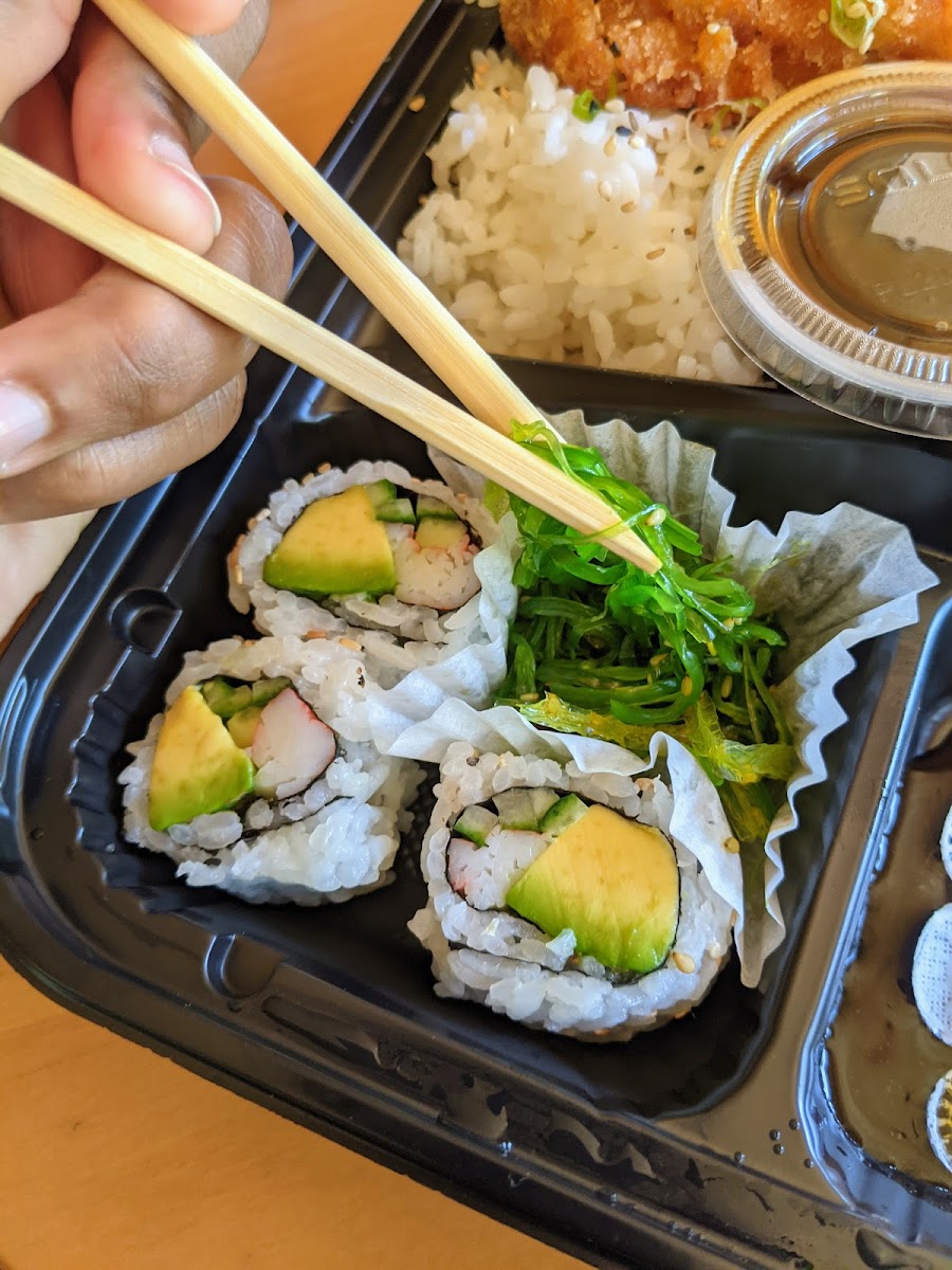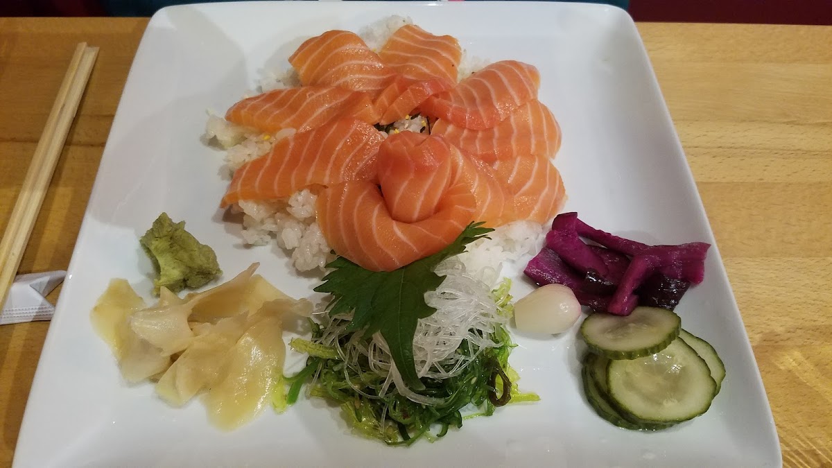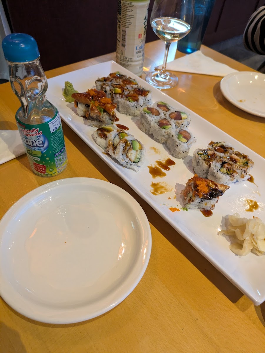 Fantastic sushi selection. I particularly like the sushi deluxe (chef's choice nigiri and California rolls) and the spicy salmon rolls. Service can be slow. There is a parking lot in the back and their sign says you pack park there until 9:30pm